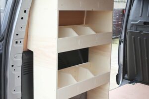 2 modular shelving units one for either side of the van