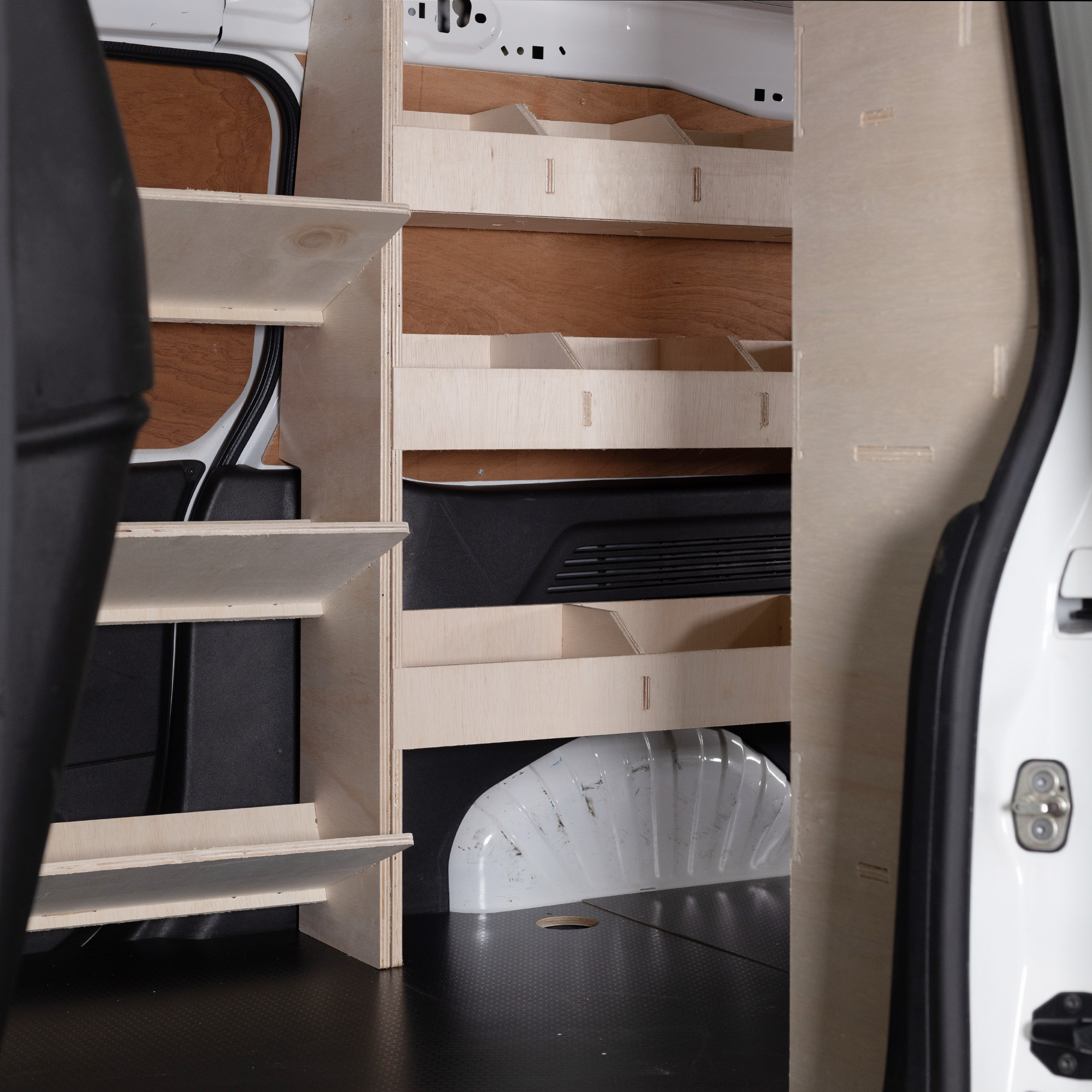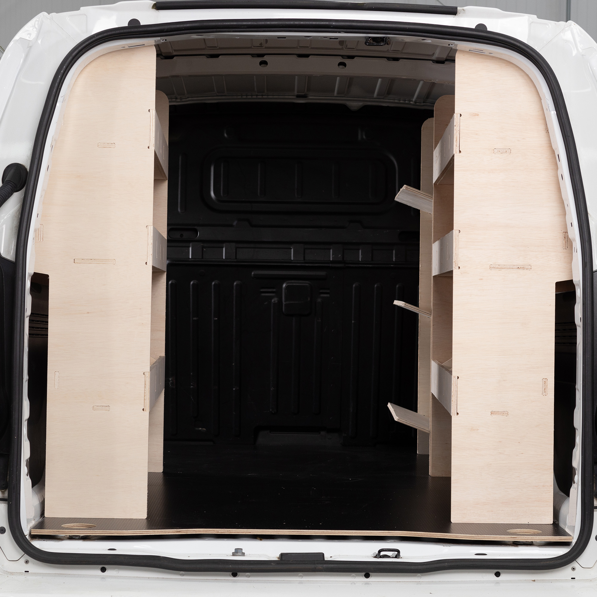 Profiled specifically to fit against the sides of a Berlingo 2019+ van these shelving units increase your van’s storage capacity without compromising floor space.