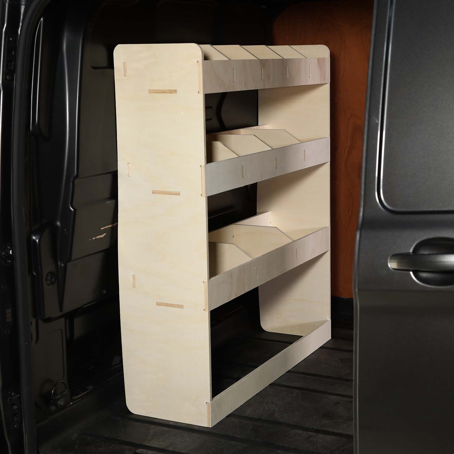 These van racks are built from PREMIUM quality 12mm plywood. Precision cut mortise and tenon joints with interlocking shelves maximises the strength and rigidity of these shelving units. This makes Vanify shelving not only lightweight but incredibly durable.
