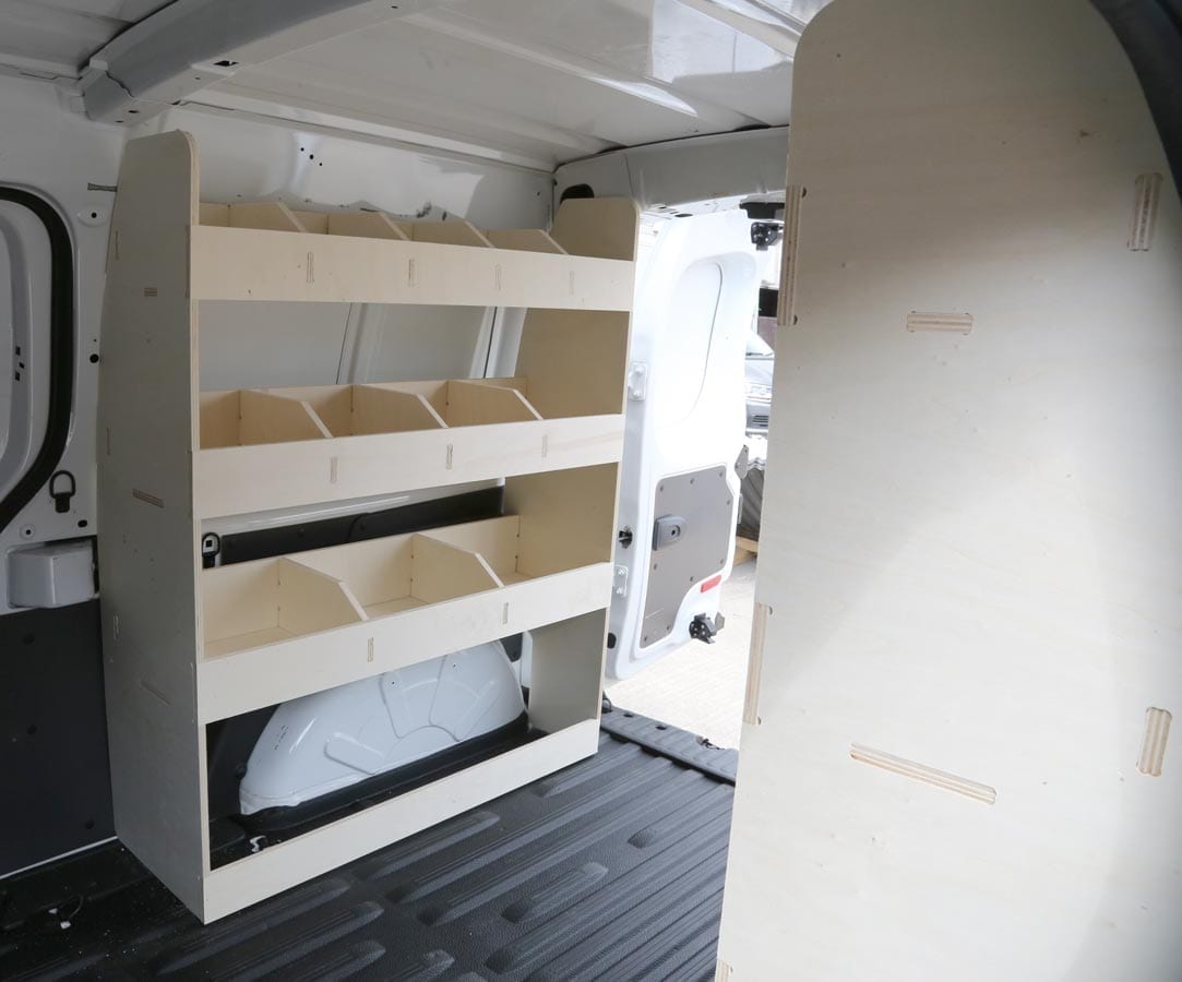 We manufacture a number of modular van racking units for the Renault Kangoo Maxi. The units are made to fit specific positions in your van. They can be purchased individually or combined to create a customised storage system for your vehicle.