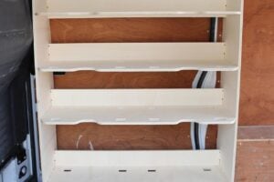 Profiled specifically to fit against the sides of a Transporter T6 2015-24 van these shelving units increase your van’s storage capacity without compromising floor space.